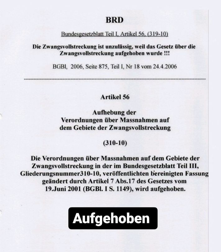 | Zwangsvollstreckungen aufgehoben | Lt. Bundesgesetzblatt Teil I, Artikel 56, (319-10) ist die Zwangsvollstreckung unzulaessig. |